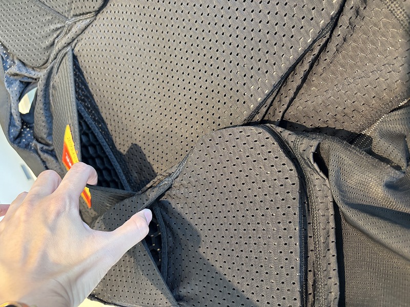 胸、背中に衝撃吸収度が高く優れたプロテクターが標準装備。