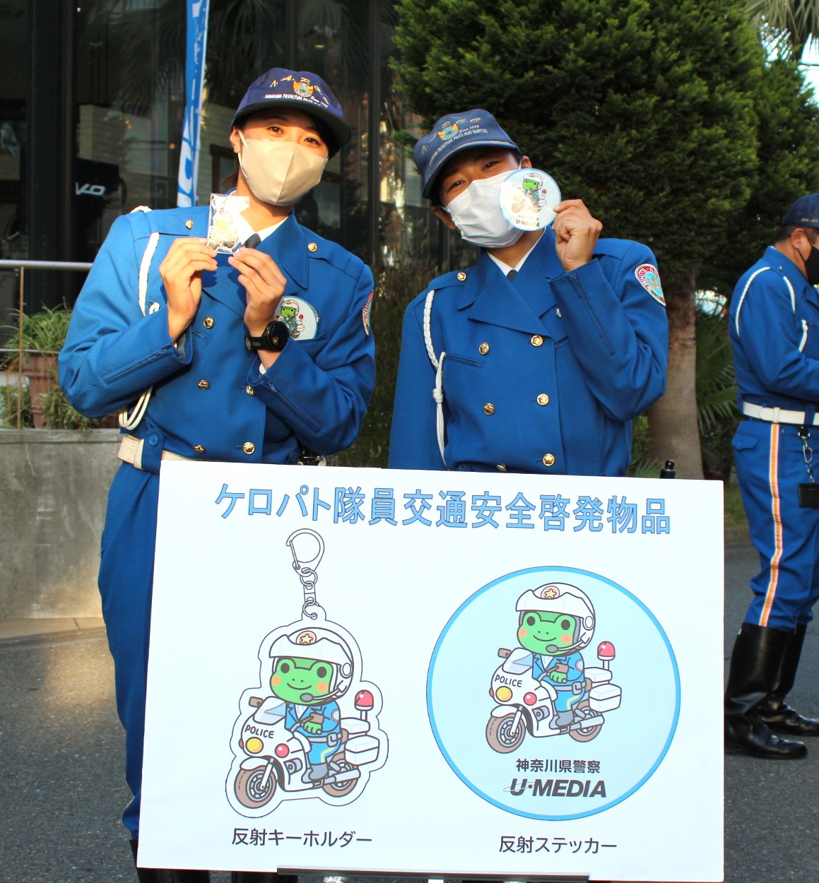 共同で作成した反射材(ステッカー、キーホルダー)もイベント等で配布いたします。