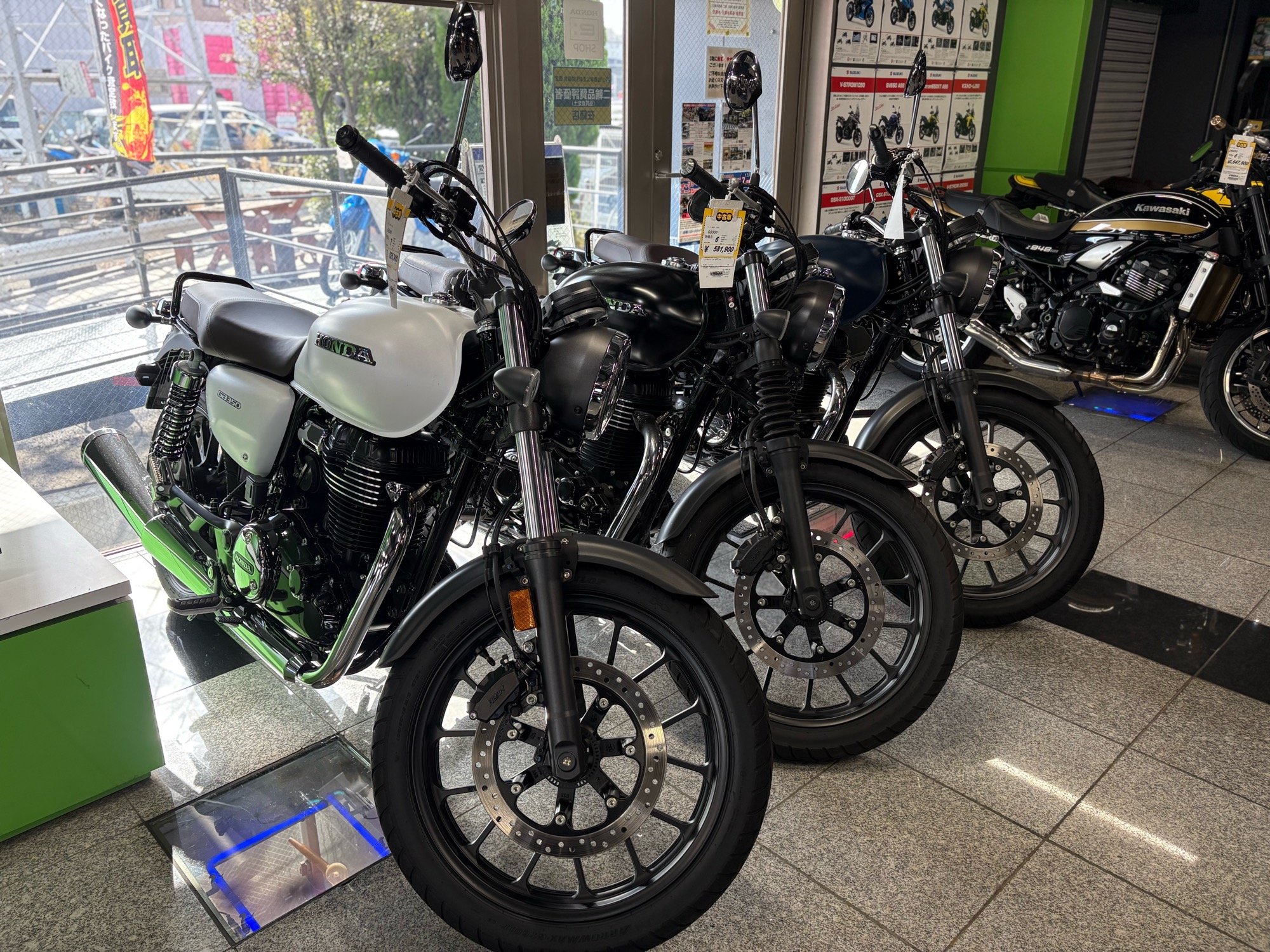 GB350白、マットブラック、マットブルーの各色ございます!