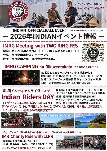 2026年のインディアンオフィシャルイベント情報が発表されましたので、まとめてみました!