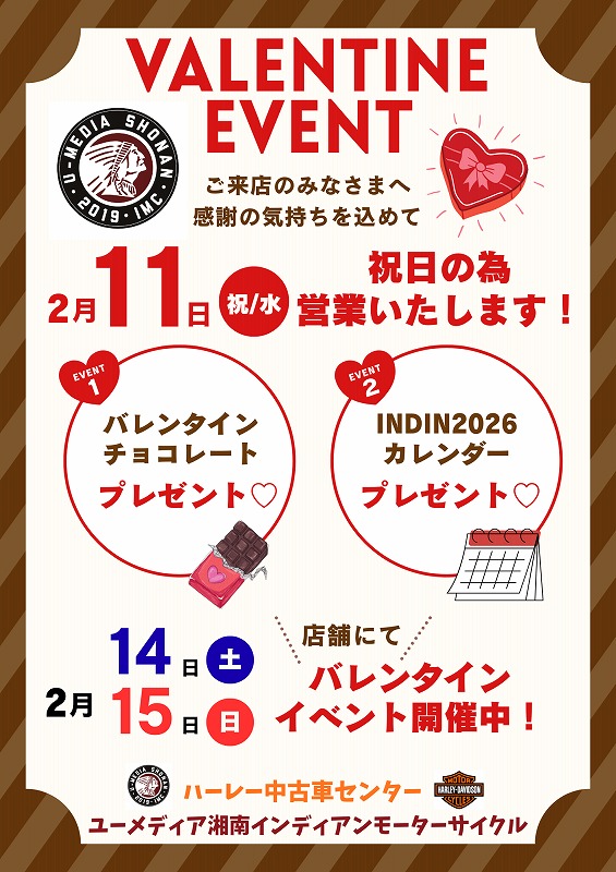 2日間は「ユーメディア湘南店(本店)」にて【インディアン×ハーレー合同試乗会】を開催!※試乗予約制