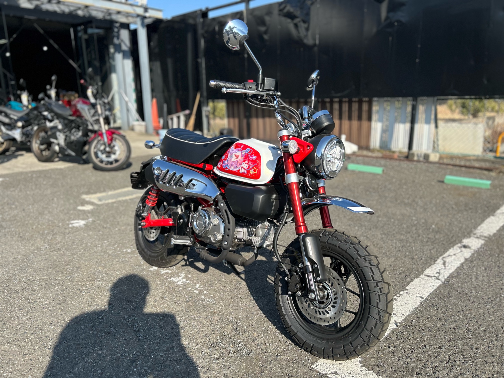 ただ通常のモンキー125ではなく、昨年限定生産されたサンリオの「クロミ」ちゃんサイドパネルを組み合わせた特別仕様です。