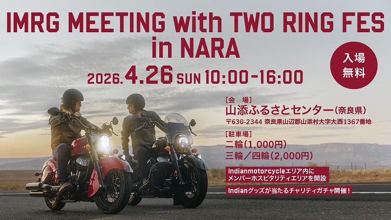 2026年最初のIMRGミーティングはバイク好きが旅をしながら集まり、様々な出展、グルメを通して交流できるフェスティバル『TWO RING FES』との併催で開催します。