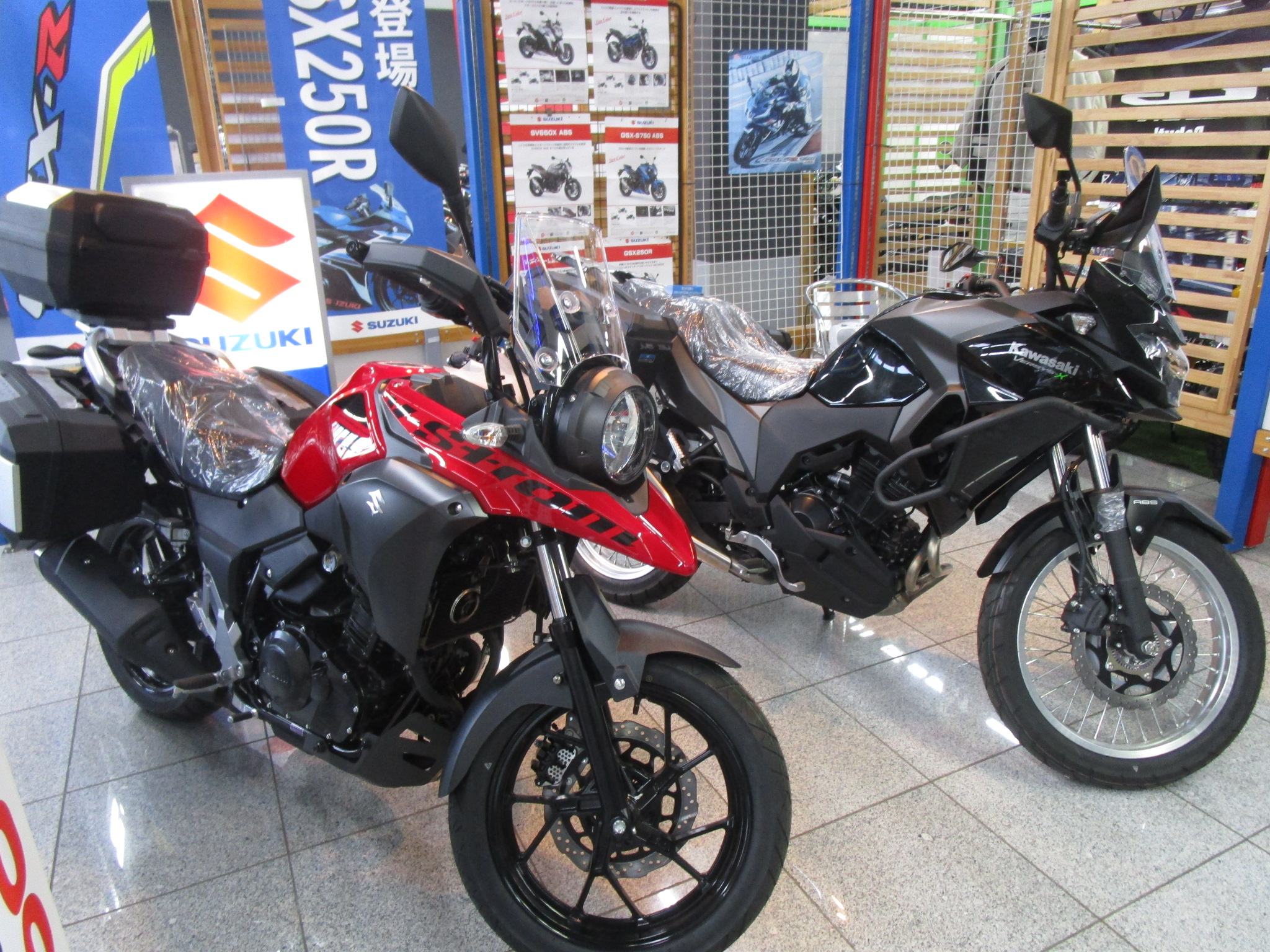 新山下店に新車のVストローム250展示中!