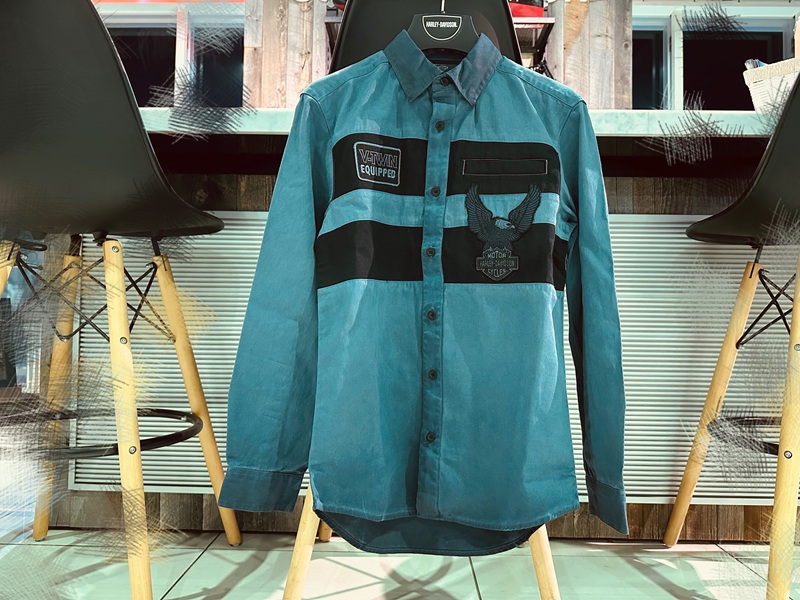 グラデーションがかった特徴的なデザインに、シャツの色に合わせたイーグルのエンブレムもポイントです。